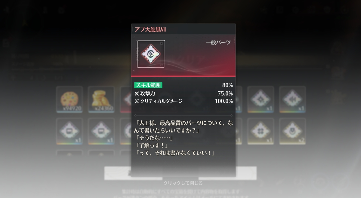 ステージ進歩100%の宝箱から、強そうなパーツが...